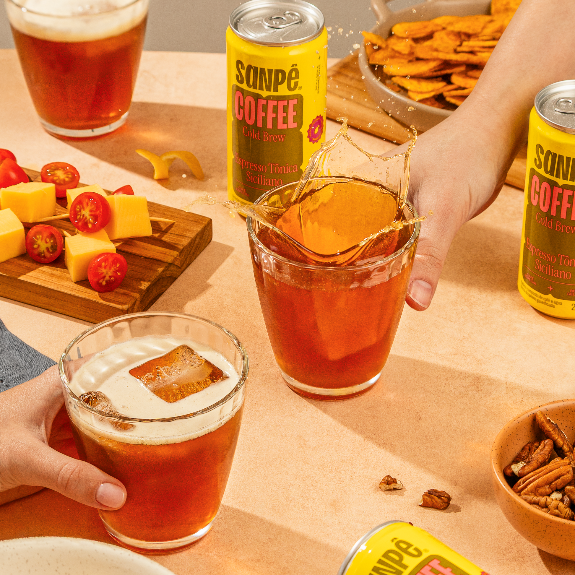 Café extraído a frio (Cold Brew), com água tônica e limão siciliano. A combinação perfeita entre a potência do café e os aromas frutados e refrescantes da água tônica. Bebida de baixo açúcar adicionado, ou seja, perfeita para consumir sem culpa.
